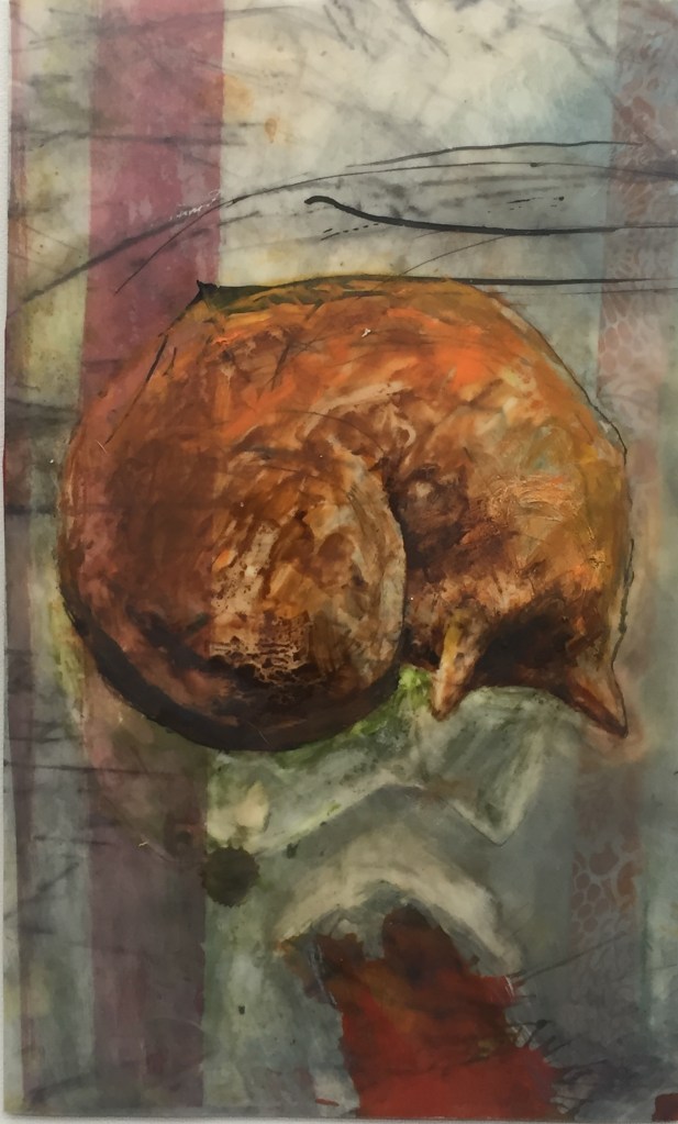 Pedals and Paws, Invitational annual celebration of Dogs and cats Antoinette Hatfield Hall, 1111 SW Broadway Portland, OR lily 7″x13″ oil / mixed media on velum